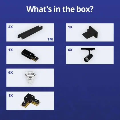 Bright Choice Complete Set 1-Fase Rail L 1 x 1 Meter Zwart | incl. 6x Spot + GU10 2700K 3W Dimbaar + Eindkap, Voedingsconnector en L -Verbindingsstuk