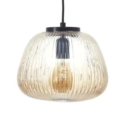 Beschrijving Brilliant Kaizen Hanglamp Glas Hanglamp Metaal Zwart Beige | 250mm - Geschikt voor 1x E27