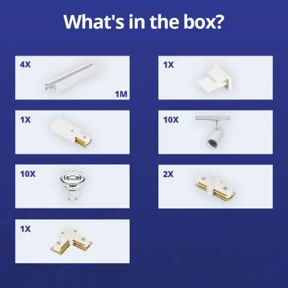 Beschrijving Complete Set 1-Fase Rail L 2 x 2 Meter Wit | incl. 10x Spot + GU10 2700K 3W Dimbaar + Eindkap, Voedingsconnector en L -Verbindingsstuk