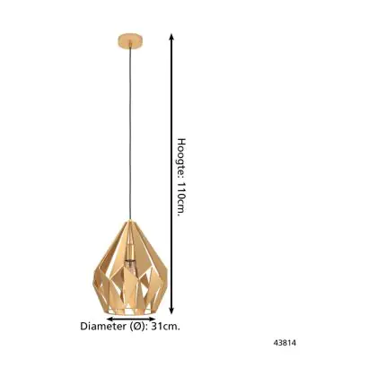Beschrijving Eglo Hanglamp Carlton Staal Goud | IP20 - Geschikt voor 1x E27