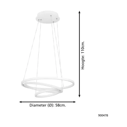 Beschrijving Eglo Hanglamp Lobinero-Z Aluminium Staal Wit 40W 6100lm - 830-865 Afstembaar Wit | IP20 - Zigbee Dimbaar