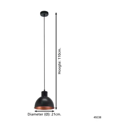 Beschrijving Eglo Hanglamp Truro 1 Staal Zwart Koper | IP20 - Geschikt voor 1x E27