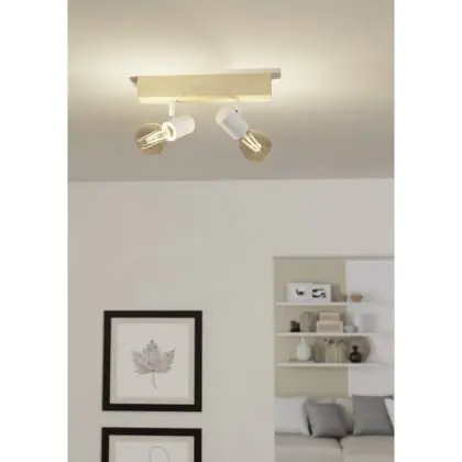 Beschrijving Eglo Plafondlamp Townshend 3 Hout Staal Wit | IP20 - Geschikt voor 2x E27