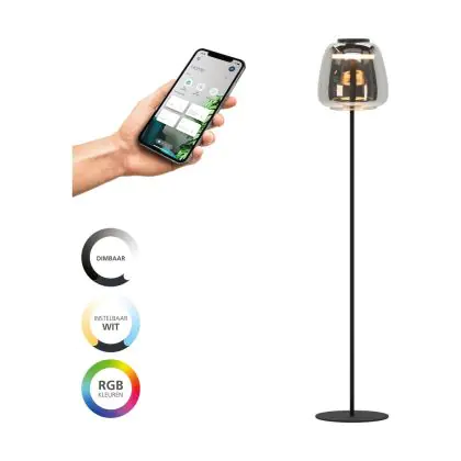 Beschrijving Eglo Vloerlamp Alfero-Z Staal Zwart 15.5W 2000lm - 827-865 Afstembaar Wit + RGB | IP20 - Zigbee Dimbaar
