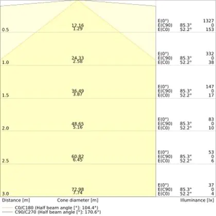 De lichtopbrengst (Lumen), geeft weer hoe krachtig het uitgestraalde licht is. Dit is belangrijk om te weten om de juiste sfeer te creëren. 0 tot 400 Lumen is bij uitstek geschikt voor accent- of sfeerverlichting. Een hoger aantal Lumen is, afhankelijk van de grootte van de ruimte, beter geschikt als ondersteunende- of basisverlichting. Heb je plafonds hoger dan 4 meter, dan is een lichtopbrengst van minimaal 8000lm aan te raden indien heldere verliching gewenst is (vb. in werkomgevingen).