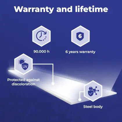 Met de aanschaf van dit LED paneel van 120x30cm maak je in meerdere opzichten een goede keuze. Met een gemiddelde levensduur van 90000 uur ben je verzekerd van een duurzaam product, dat vele jaren optimaal blijft presteren. Bovendien draag je een steentje bij aan een schoner milieu, want LED verlichting vermindert de C02 uitstoot en bevat geen giftige stoffen zoals kwik.