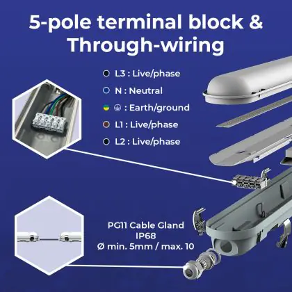 Beschrijving Noxion LED Waterdichte Montagebalk Poseidon V3.0 43W 5590/6020lm - 830-865 CCT | 150cm - Doorvoerbedrading (5x2.5mm2) - Bewegings- En Lichtsensor