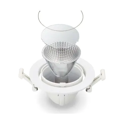 De lichtopbrengst en de gradenbundel spelen een grote rol. Zo geeft de lichtopbrengst van 4000 Lumen in combinatie met de 36° stralingshoek deze inbouwspot een specifieke toepassing. Kort samengevat is een lichtintensiteit van maximaal 400 Lumen ideaal voor accentverlichting, terwijl hogere waardes goed gebruikt kunnen worden als basisverlichting. Over het algemeen geldt: hoe breder de gradenbundel, hoe geschikter deze is door basisverlichting. Dit komt doordat het licht over een groter oppervlak wordt verspreid. Smallere gradenbundels (tot 40°) kunnen echter bij hoge plafonds ook goed tot hun recht komen als algemene verlichting.