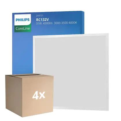 Beschrijving Voordeelpak 4x Philips LED Paneel CoreLine RC132V 22/31W 2900-4300lm - 830-835-840 CCT | 60x60cm - UGR <19 - Selecteerbaar Wattage